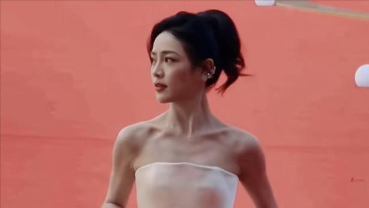 当她手提裙摆步入会场时,肩胛骨与锁骨线条清晰可见,手臂骨骼分明,身形单薄得近乎透明。微风吹过,仿佛下一秒就会被轻轻卷走。